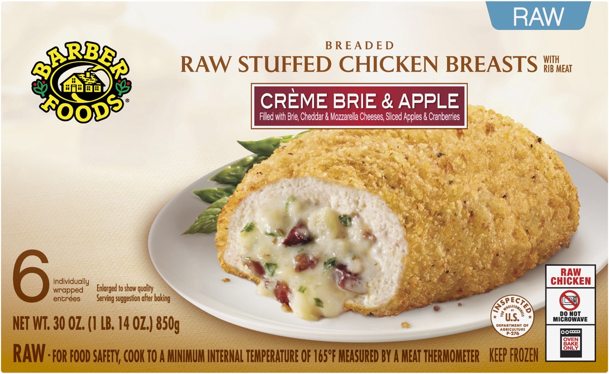 For a delicious entree that is easy to prepare, Barber Foods Breaded Raw Stuffed Chicken Breasts Creme Brie and Apple are perfect for any night of the week. We start with a creamy blend of brie, chedd…