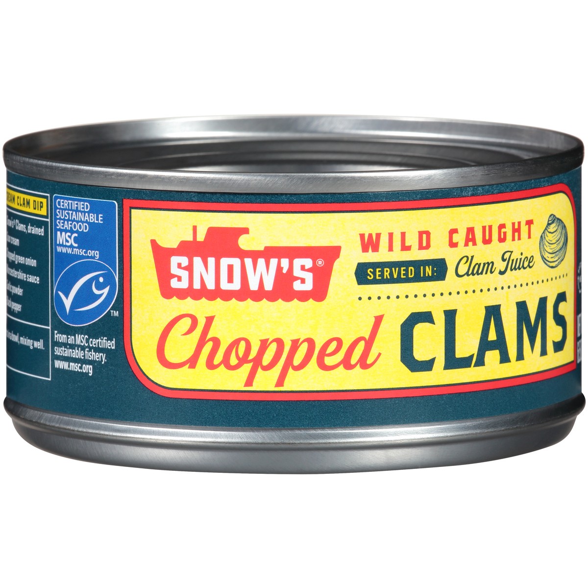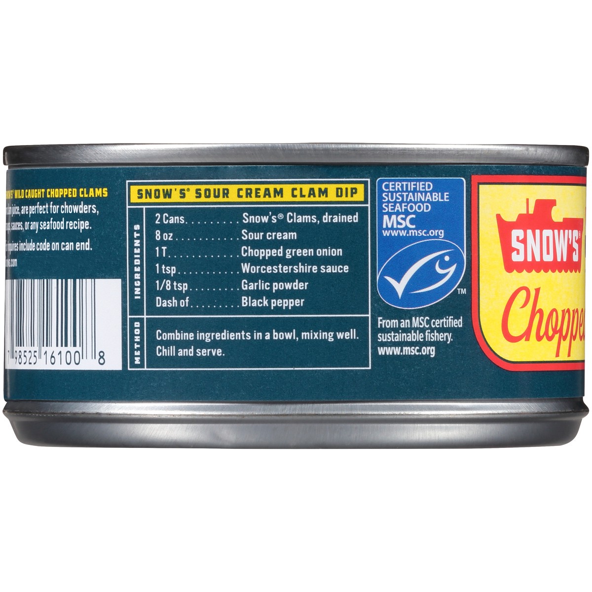 Wild caught. snows.com. For inquires include code on can end. Snows.com. Certified sustainable seafood MSC. From an MSC certified sustainable fishery. www.msc.org. Recycle me. Product of USA. Snow's W…