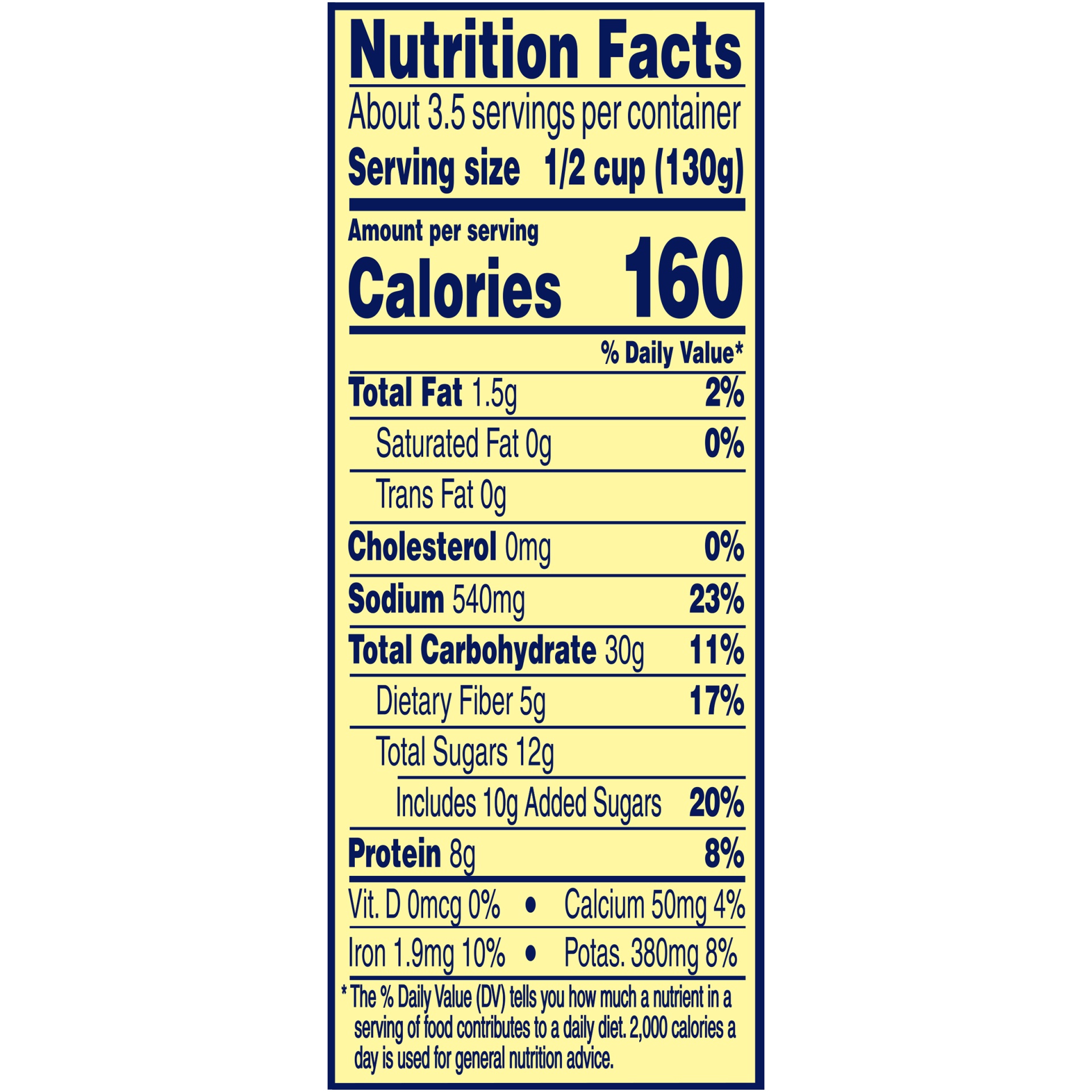 - A pantry staple with 8g of protein (8% DV) and 5g of fiber (17% DV) per serving (See nutrition information for sodium content)