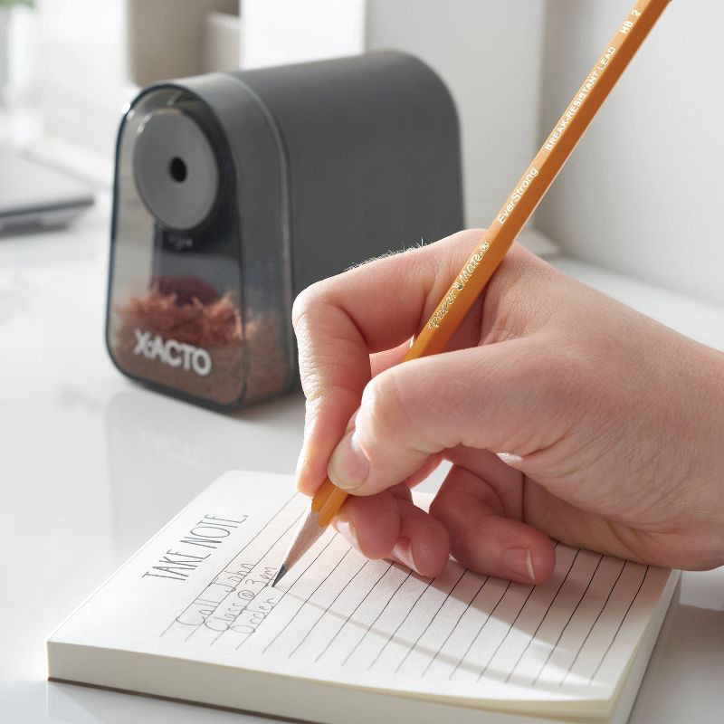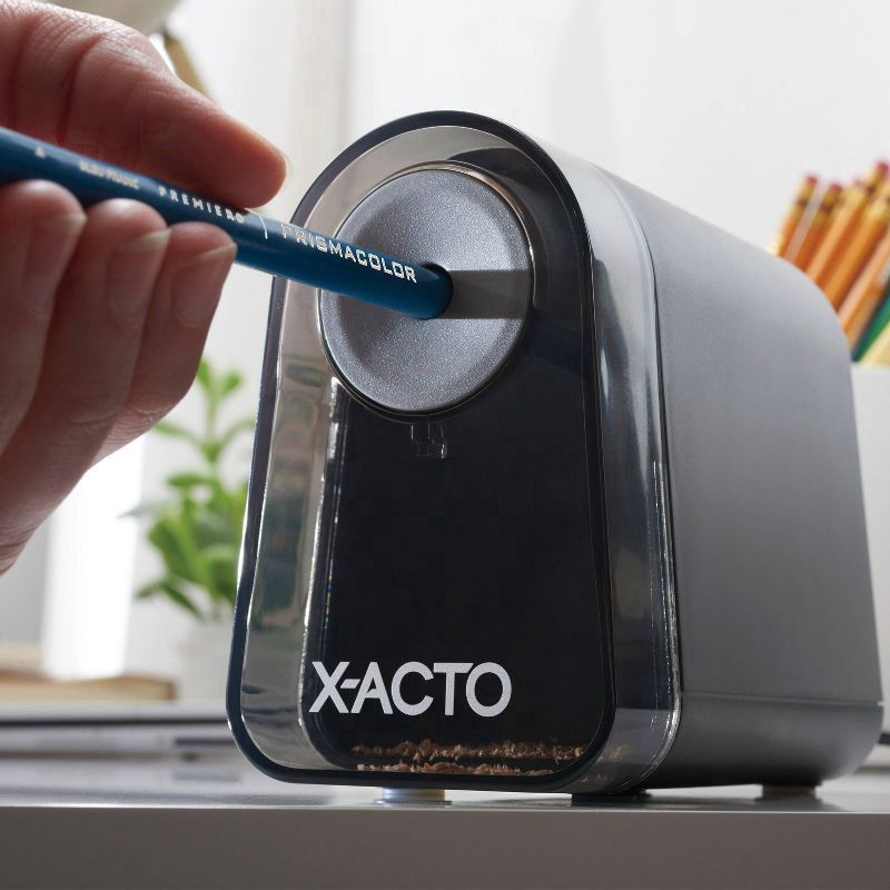 Spend less time sharpening and more time writing with the break-resistant X-ACTO® Mighty Mite® Pencil Sharpener. With the Pencil Saver® feature, this electric pencil sharpener prevents oversharpening …