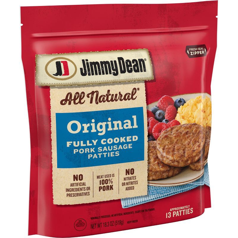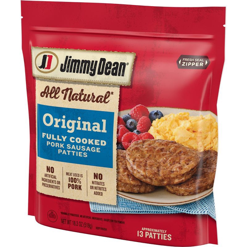 - Jimmy Dean Fully Cooked Pork Sausage Patties deliver the great taste and quality you expect, now in an all-natural line