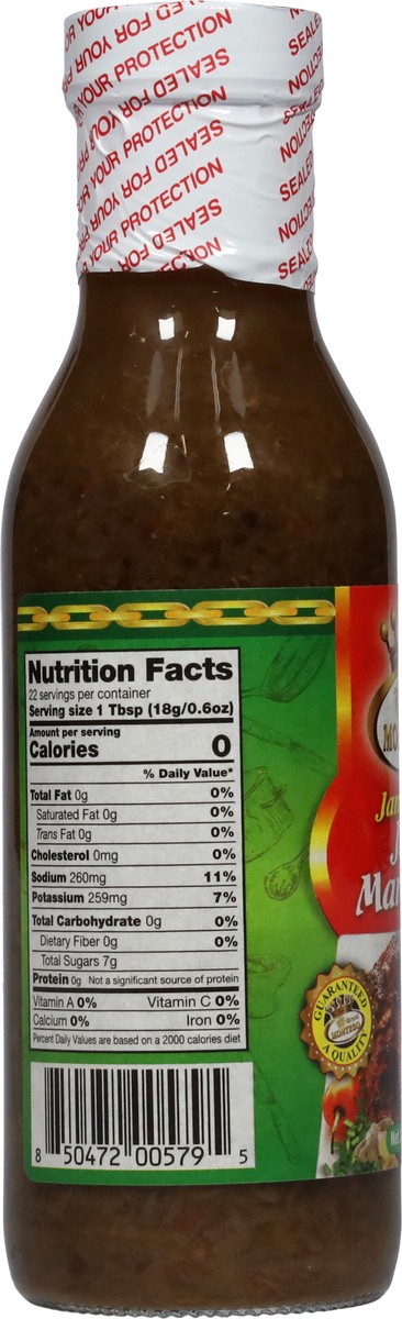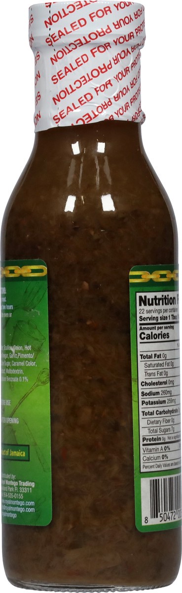 Water, Scallion, Onion, Hot Pepper, Salt, Cane Vinegar, Garlic, Pimento/Allspice, Thyme, Cane Sugar, Caramel Color, Dextrose, Yeast Extract, Maltodextrin, Xanthan Gum, & Sodium Benzoate 0.1%.