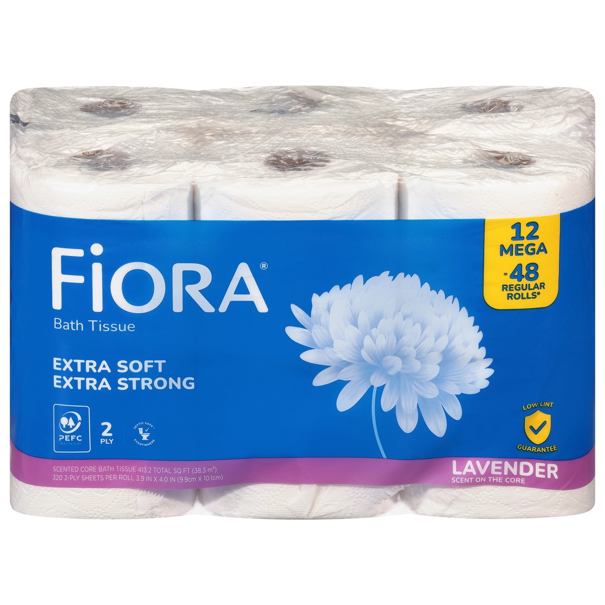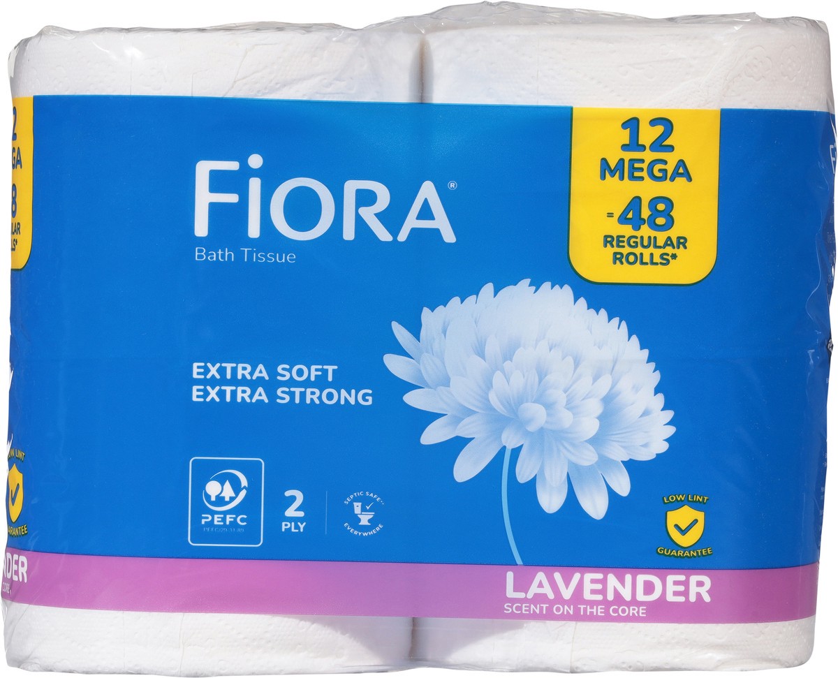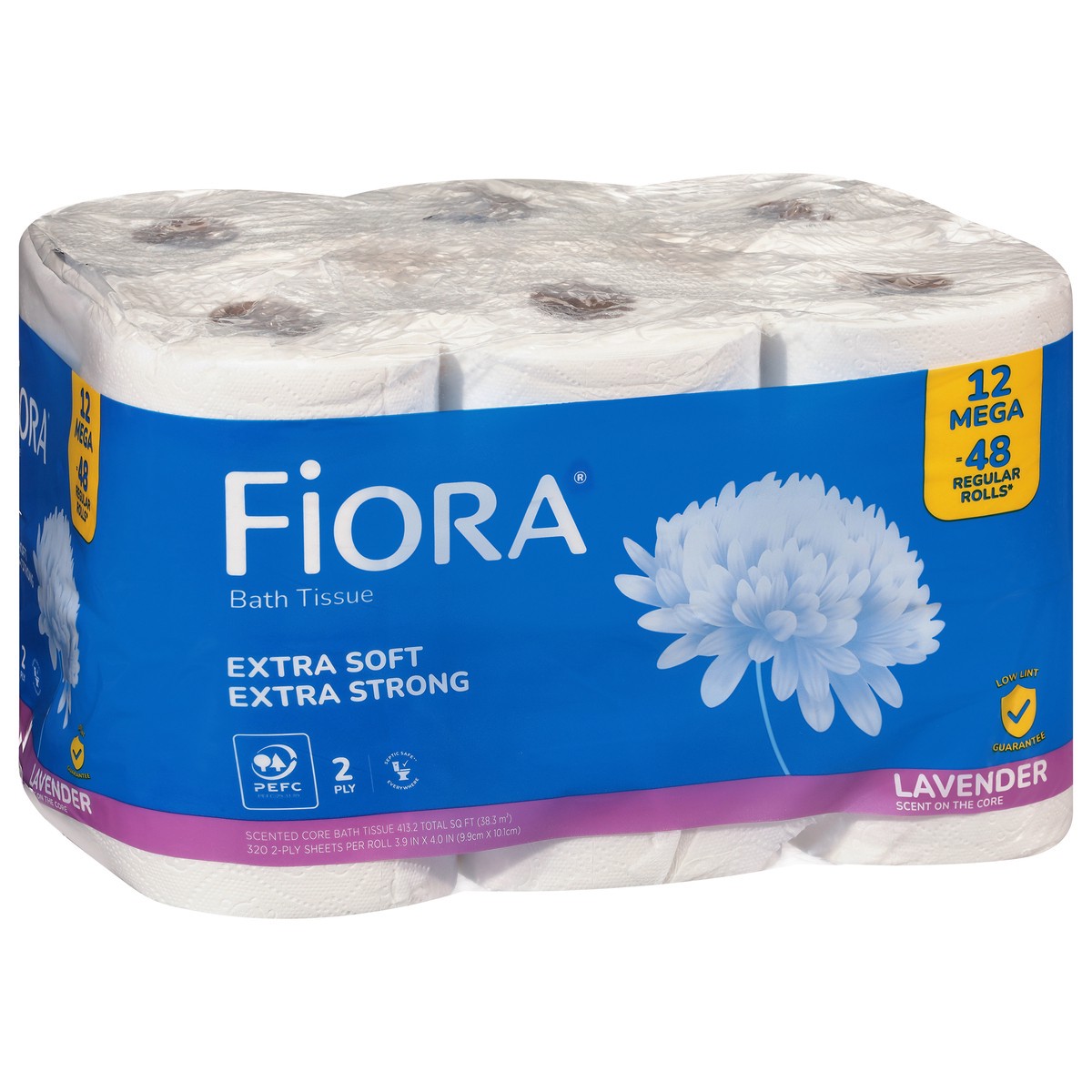 Fiora 2-Ply Extra Soft Extra Strong Lavender Scent Mega Bath Tissue, 12 Rolls