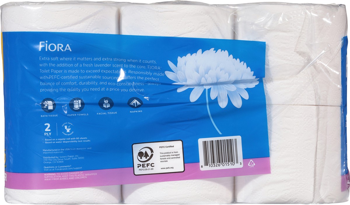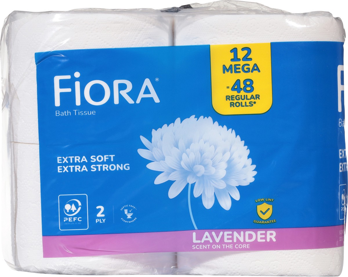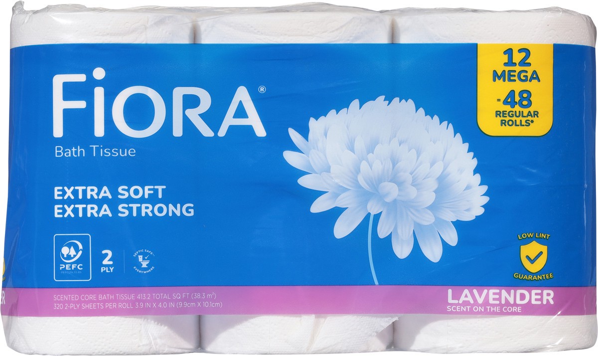 Fiora 2-Ply Extra Soft Extra Strong Lavender Scent Mega Bath Tissue, 12 Rolls