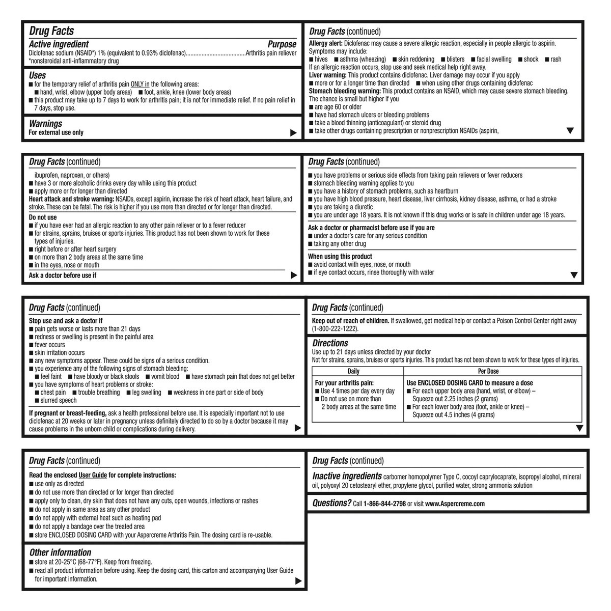 Active Ingredients: *Diclofenac Sodium (NSAID) (Equivalent to 0.93% Diclofenac) (1 %), Arthritis Pain Reliever. Inactive Ingredients: Carbomer Homopolymer Type C, Cocoyl Caprylocaprate, Isopropyl Alco…