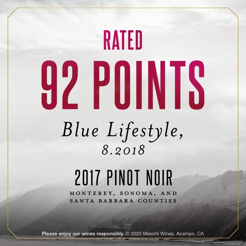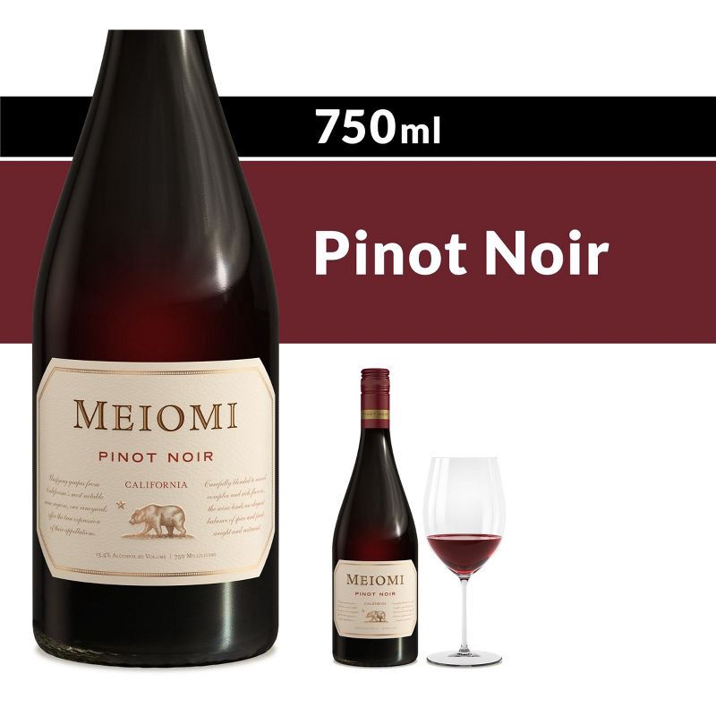 - One 750ml bottle of Meiomi Pinot Noir Red Wine, containing five 5 fl. oz. glasses of wine