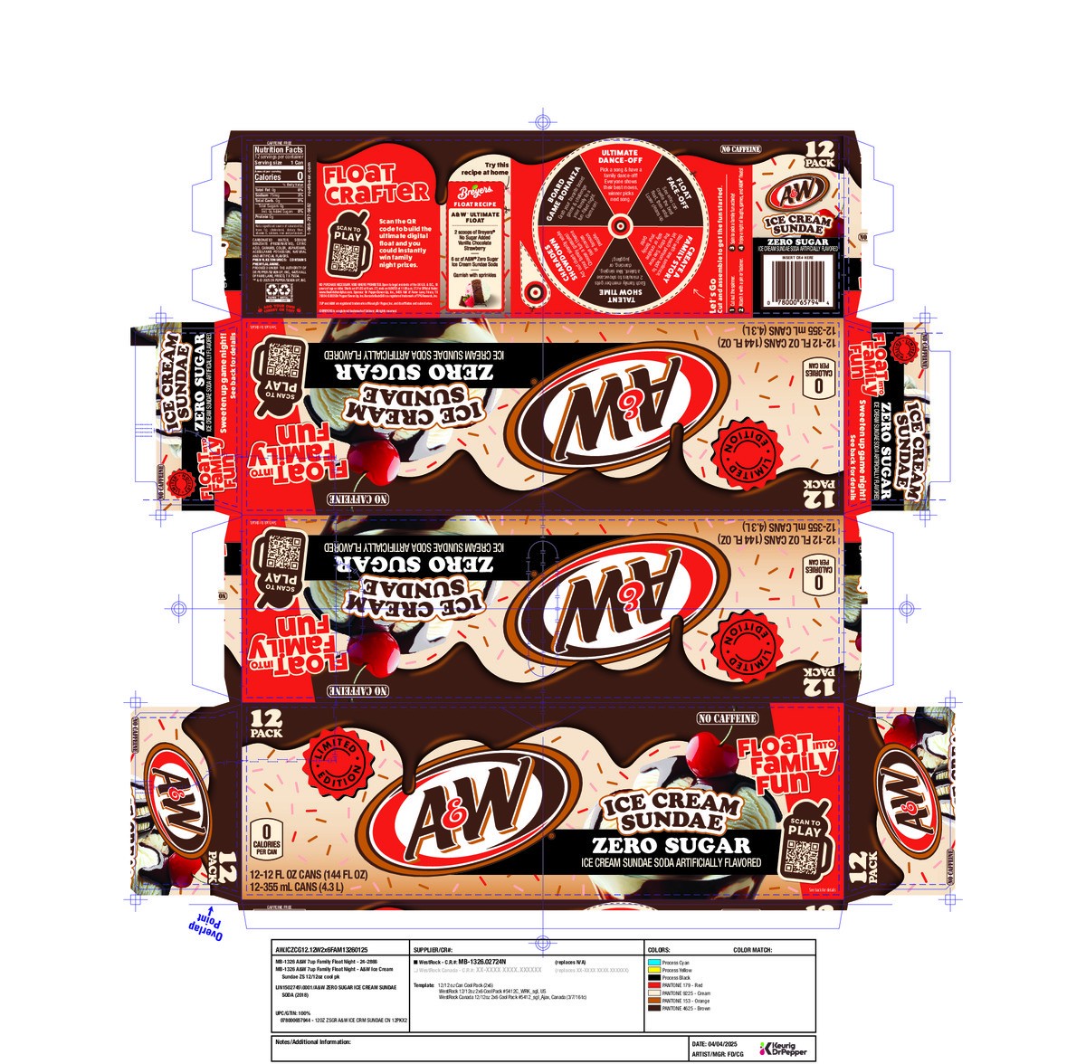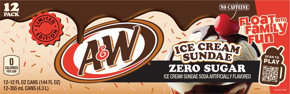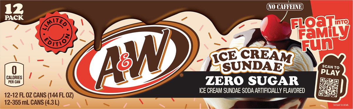A&W Ice Cream Sundae Zero Sugar Soda, 12 fl oz cans, 12 pack