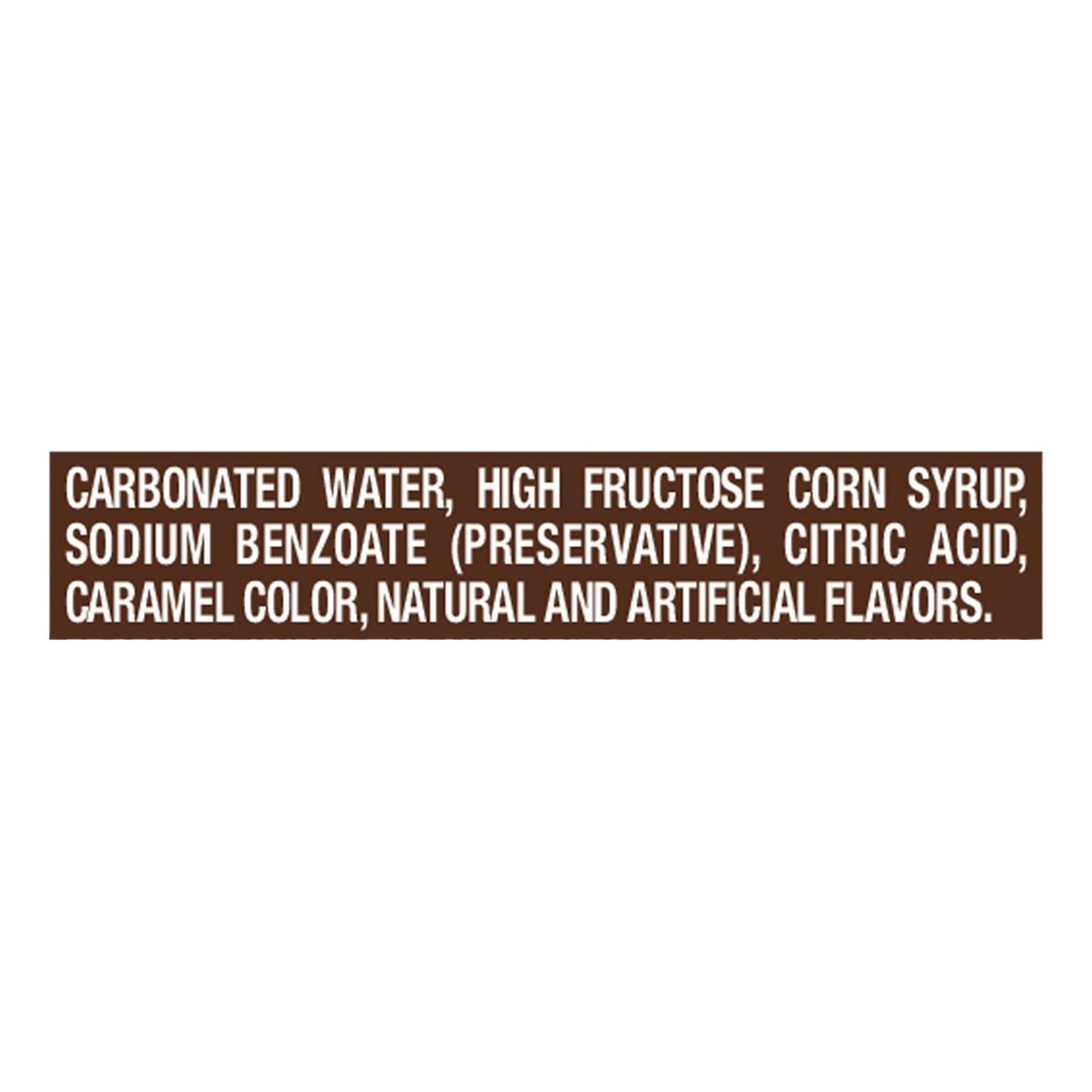 Carbonated Water, High Fructose Corn Syrup, Sodium Benzoate (Preservative), Citric Acid, Caramel Color, Natural and Artificial Flavors.