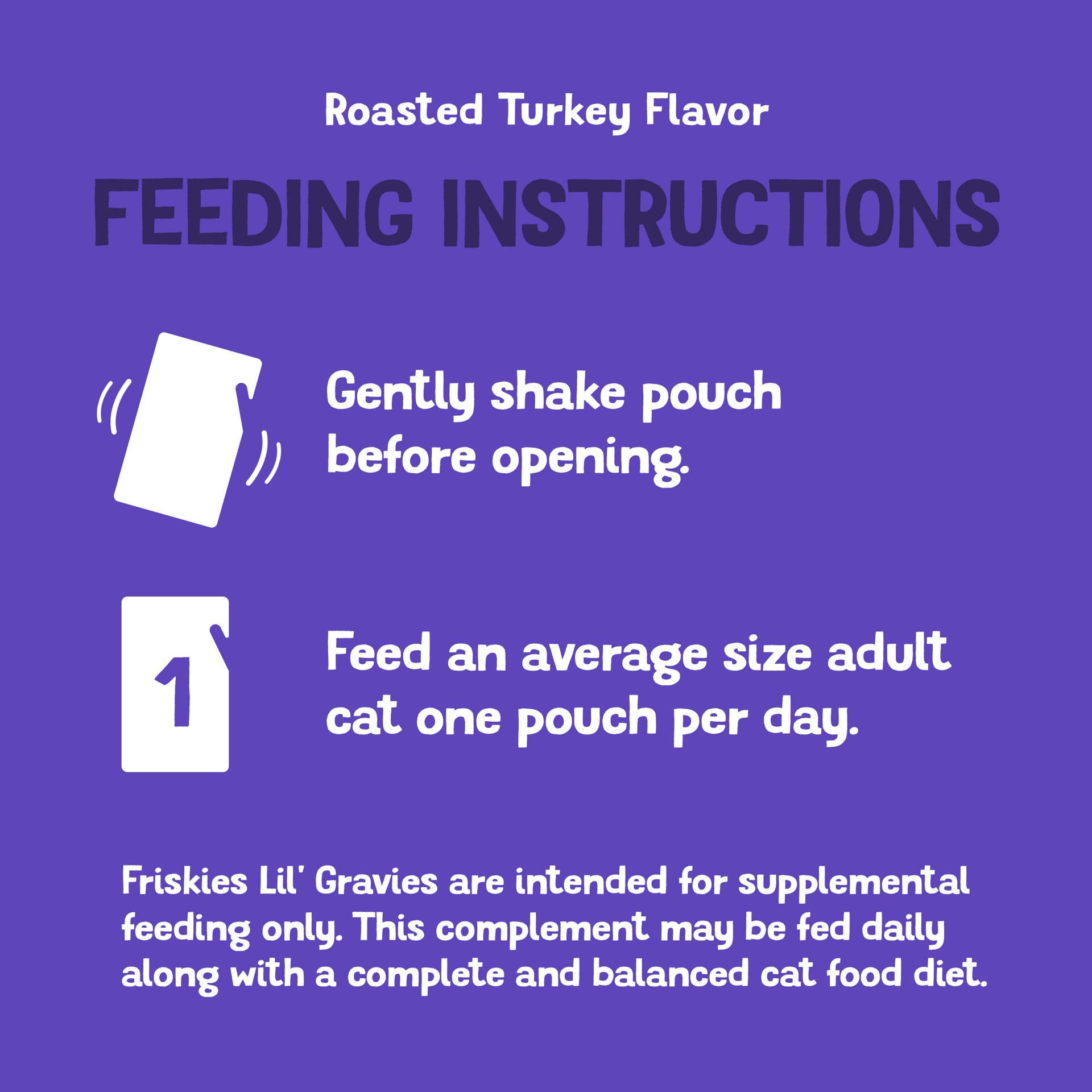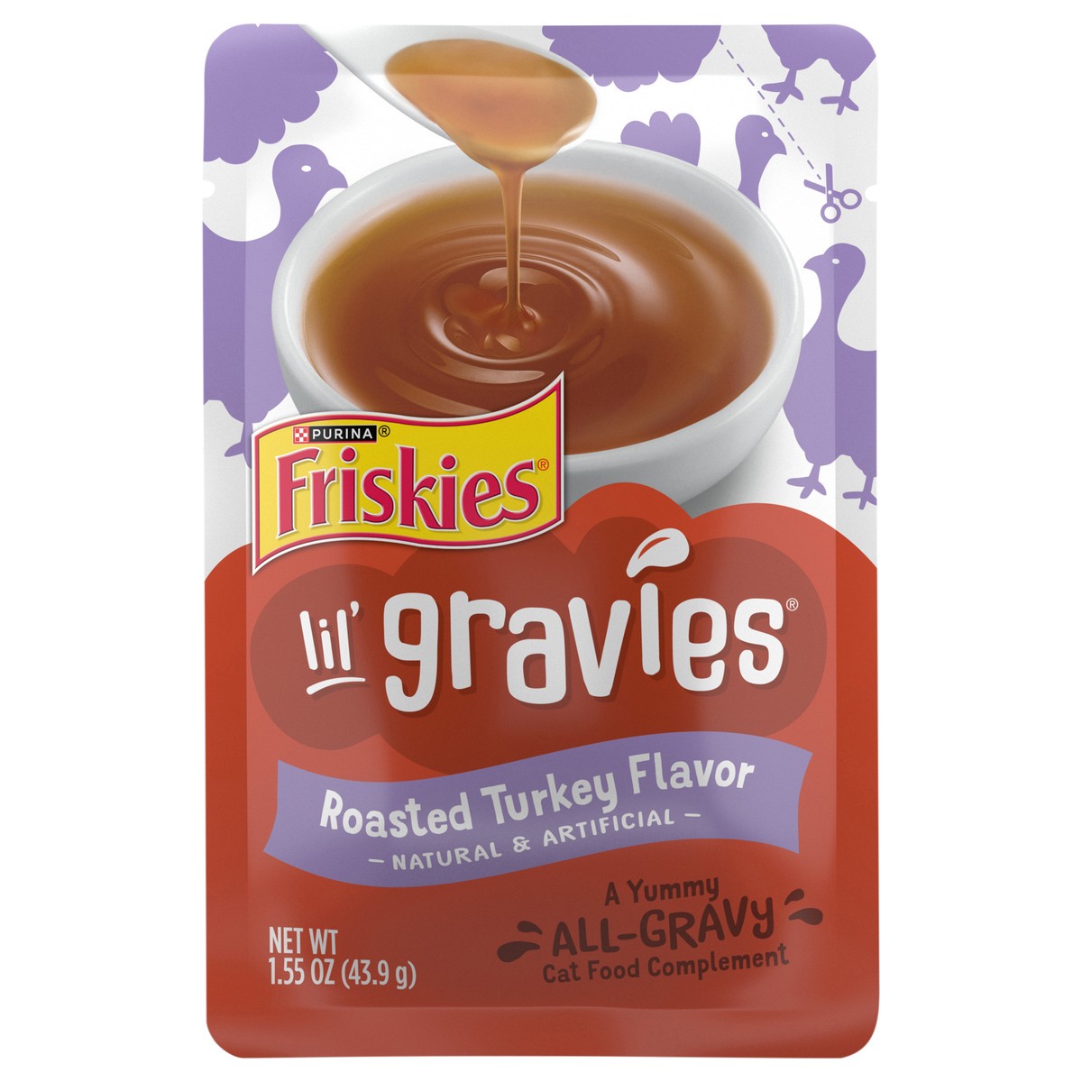 Feed your cat''s gravy fantasy with Friskies Lil'' Gravies Roasted Turkey Flavor Cat Food Complement. Made with yummy roasted turkey flavor, each pouch of gravy-licious goodness can be used as a toppeā¦
