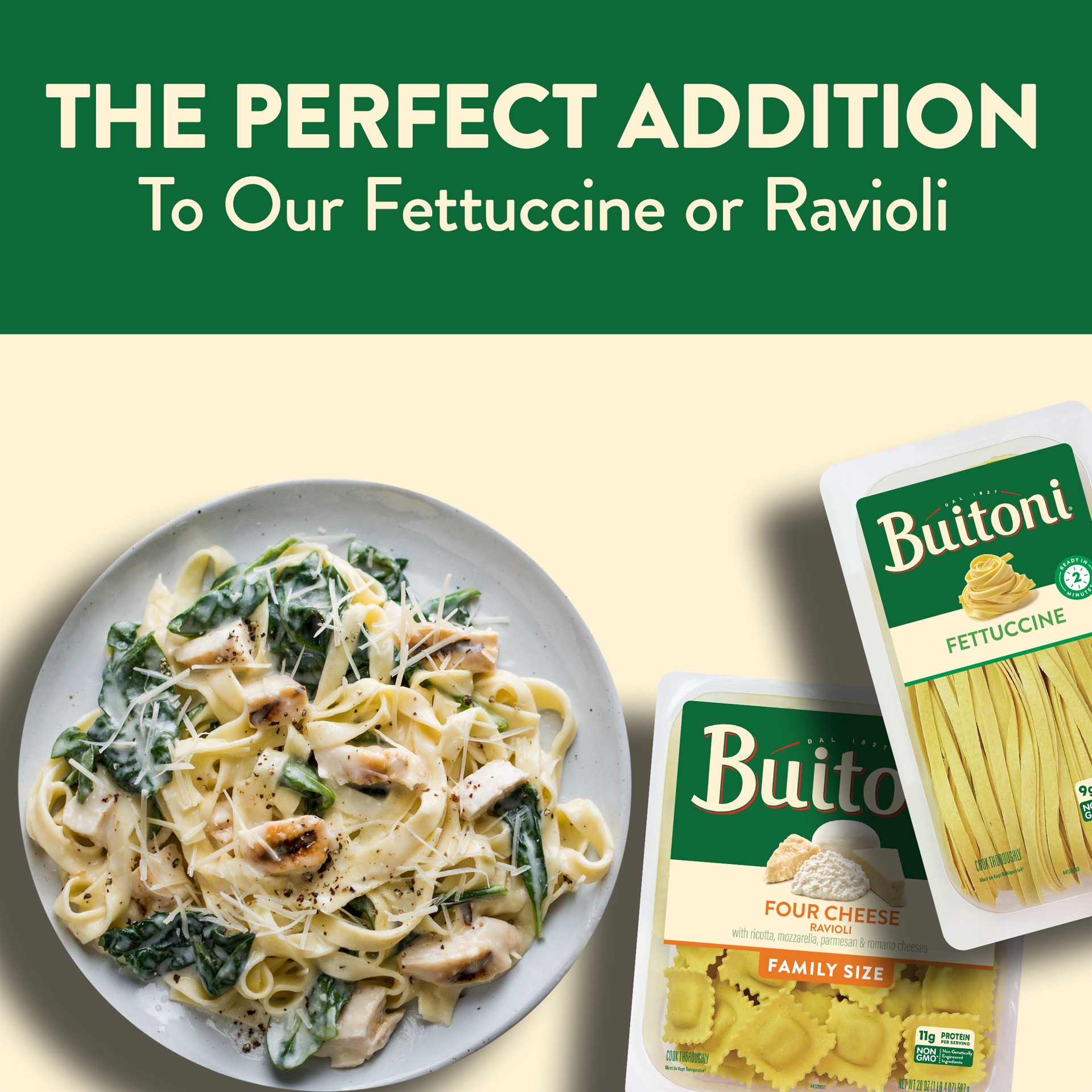 Serve up a delicious pasta dinner in minutes with Buitoni Alfredo Sauce. This classic recipe blends together cream, butter and Parmesan cheese with other non-GMO ingredients for a rich-tasting sauce t…