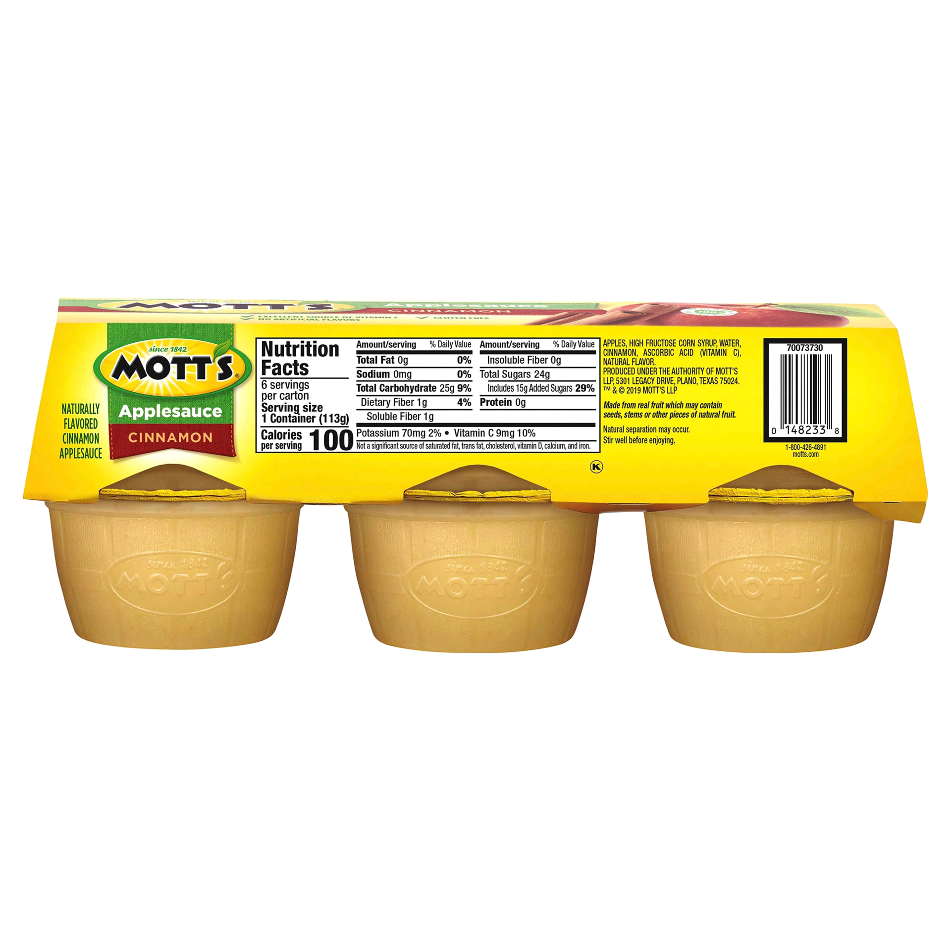 The original, delicious treat, Mott's Cinnamon Applesauce is the perfect snack or meal companion. It's a good source of Vitamin C and free of cholesterol. Bringing the best of the orchard to your hous…