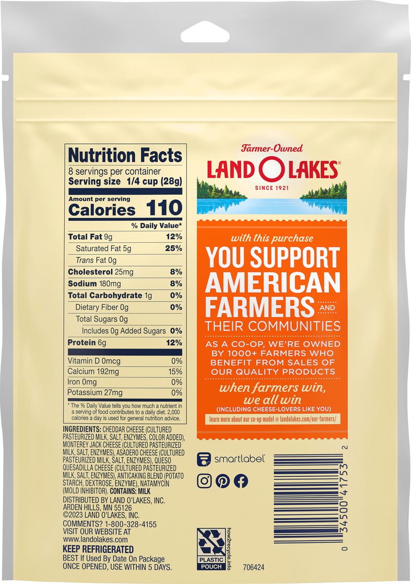 - CONVENIENT COOKING: The tasty flavor of Land O Lakes Mexican Blend thick-cut shredded cheese is exactly what your next recipe calls for; cheese blend comes in a resealable bag for added convenience