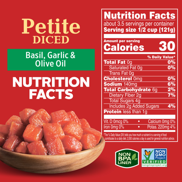 Cook confidently with the flavorful taste of Hunt's Petite Diced Tomatoes Garlic & Olive Oil. Made with vine-ripened tomatoes that are picked at the peak of freshness, these canned tomatoes are season…