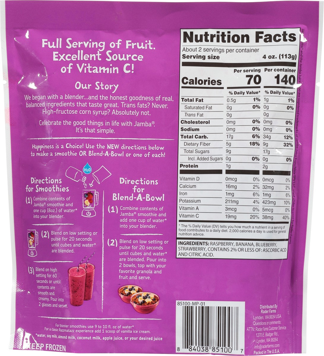 Raspberry, banana, blueberry and strawberry. Our Story: We began with a blender - and the honest goodness of real, balanced ingredients that taste great. Trans fats? Never. High-fructose corn syrup? A…
