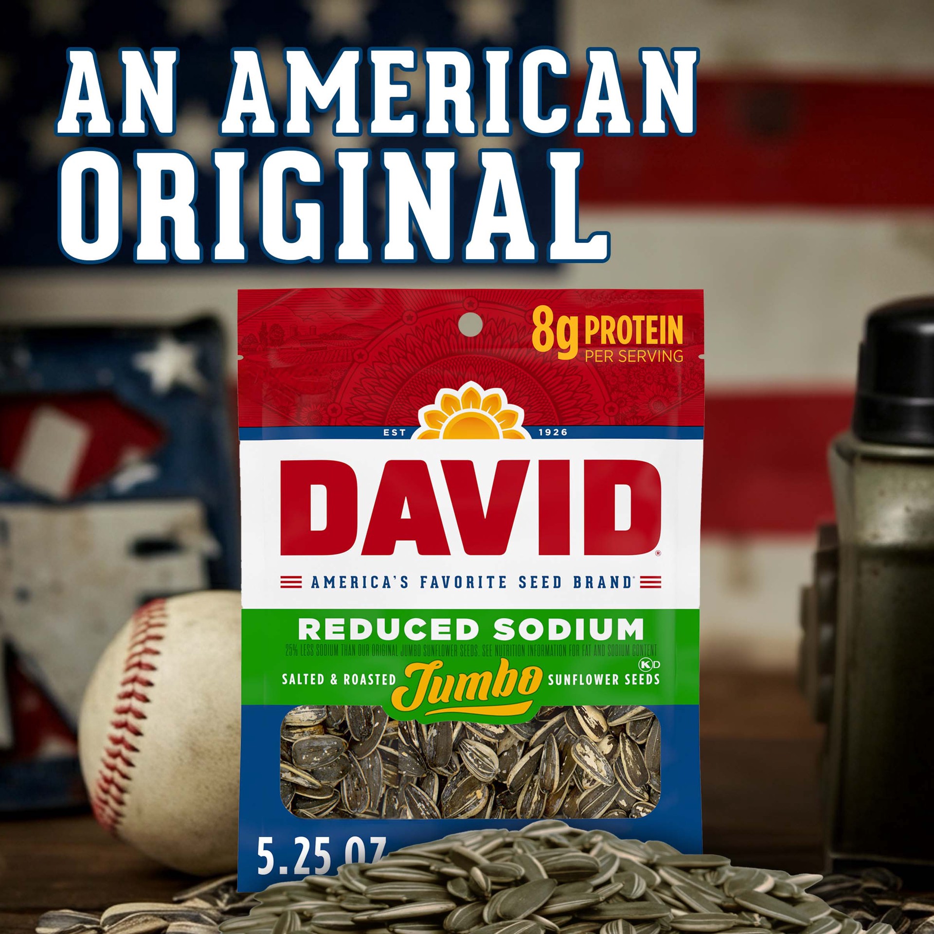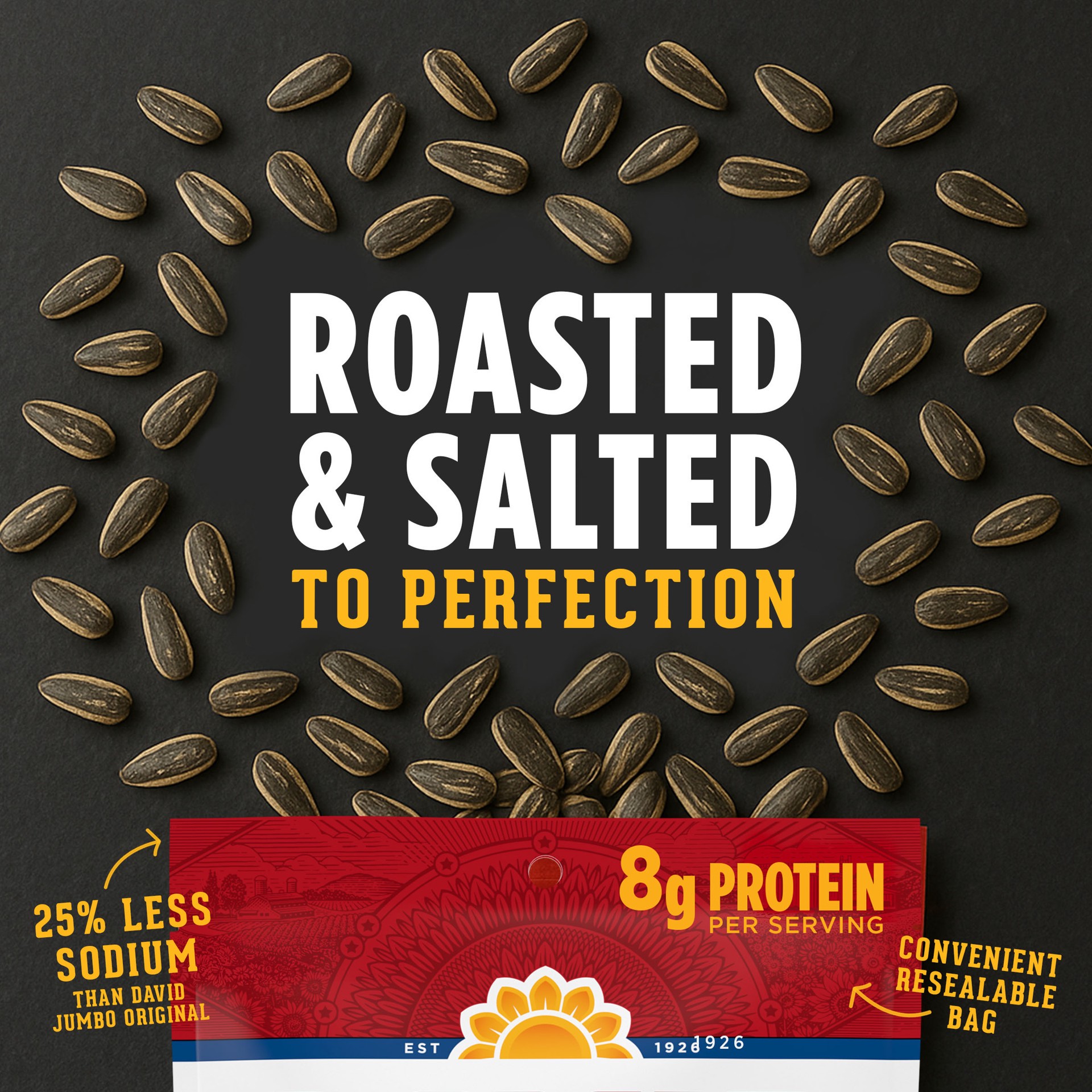 - Contains one 5.25 oz. bag of DAVID Reduced Sodium Salted & Roasted Jumbo Sunflower Seeds