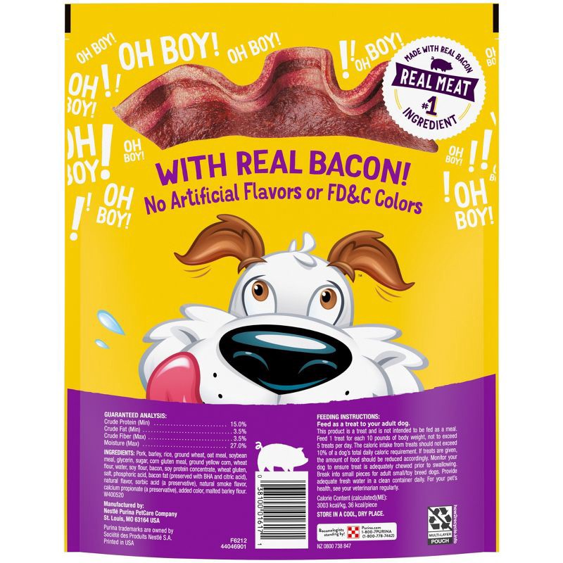 - Bacon flavored dog treats with real meat as the number 1 ingredient