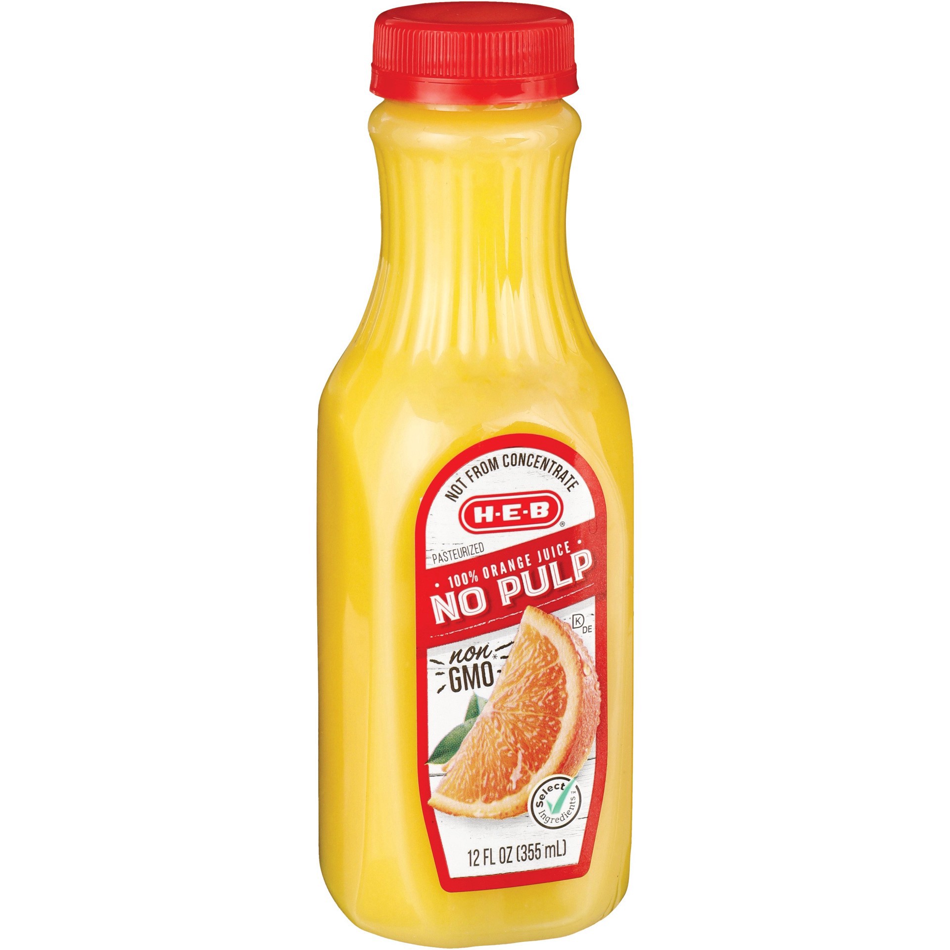 Absolutely free of pulpy bits, H-E-B 100% orange juice is a super-smooth and citrusy treat. Savor the juicy-sweet deliciousness in every sip of this grab-and-go OJ.• 100% orange juice• 12-oz bottle• N…