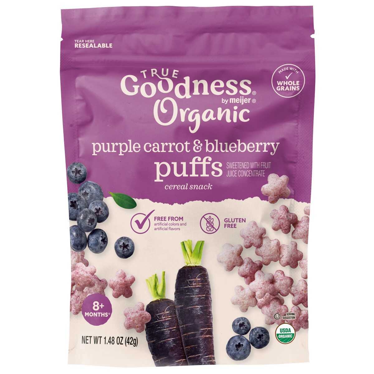 True Goodness Puffs are made from high quality organic whole grains. They are a great way to introduce new tastes and textures to your child's snack time. These tasty star shape bites are perfectly si…