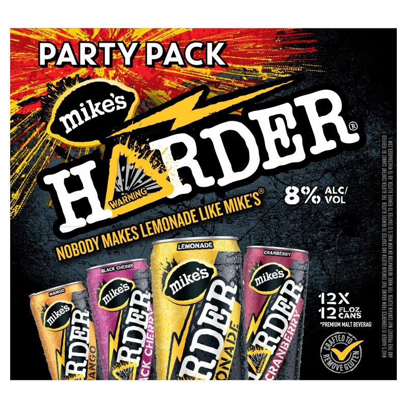 Mike's HARDER Party Variety Pack brings together bold lemonade and fruit flavors. 8% ABV in one shareable lineup. Each flavor delivers juicy, full-bodied taste layered over bright lemonade character, …