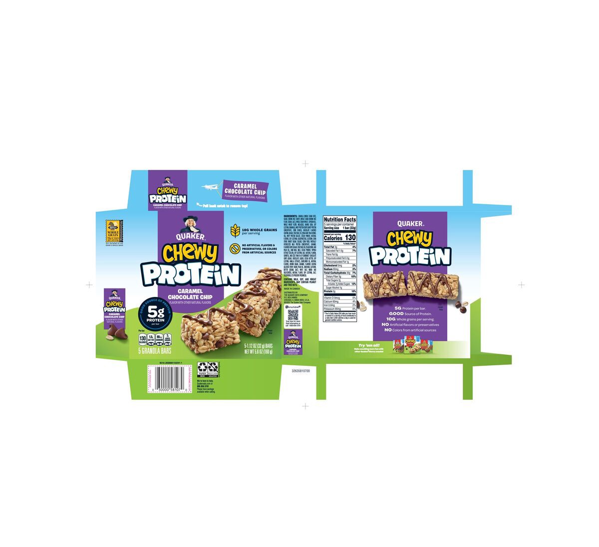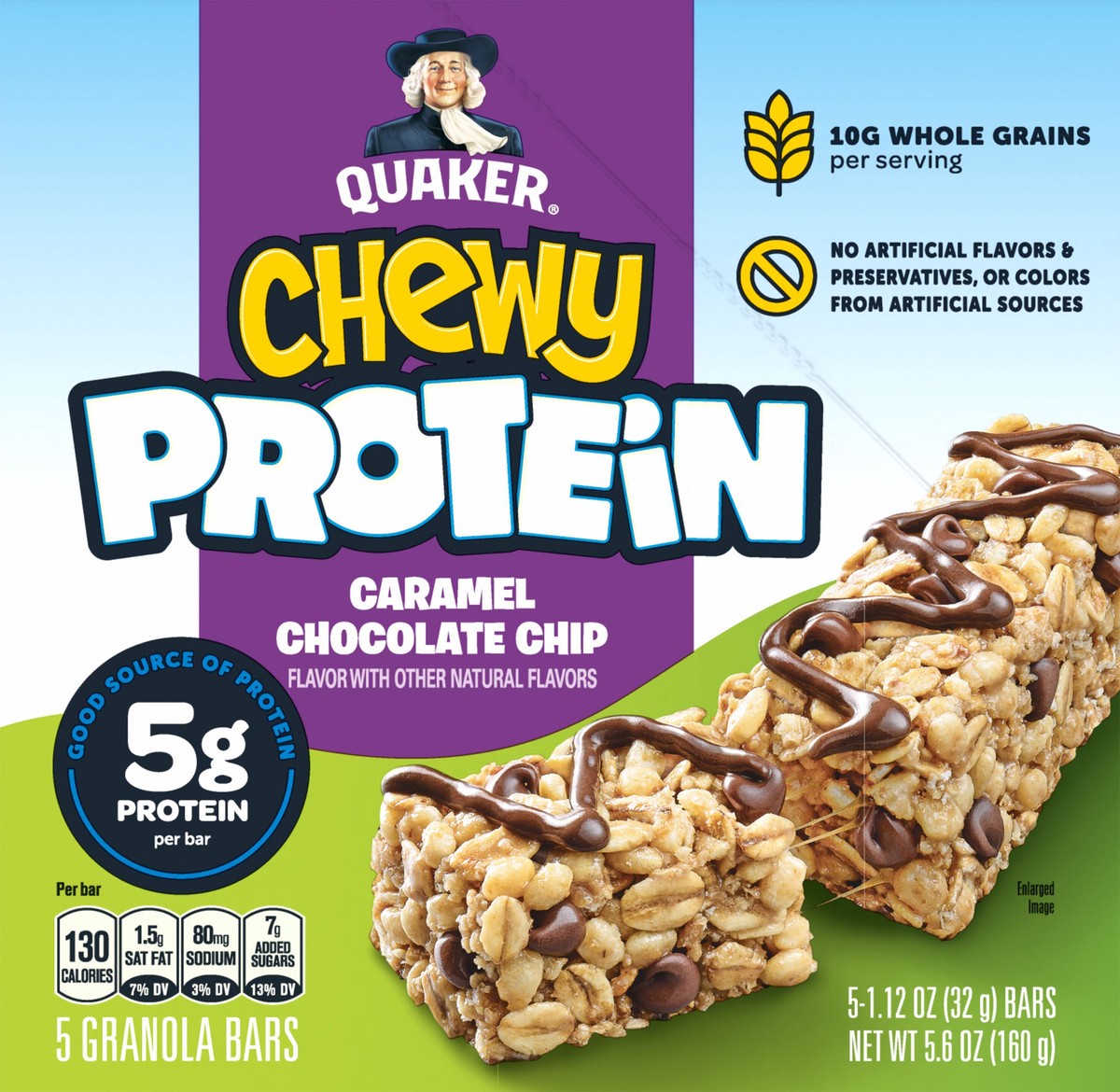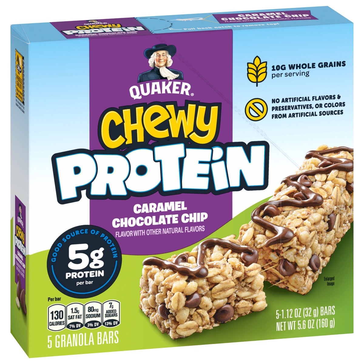 Quaker Chewy Protein Granola Bars Caramel Chocolate Chip, 5.6 oz