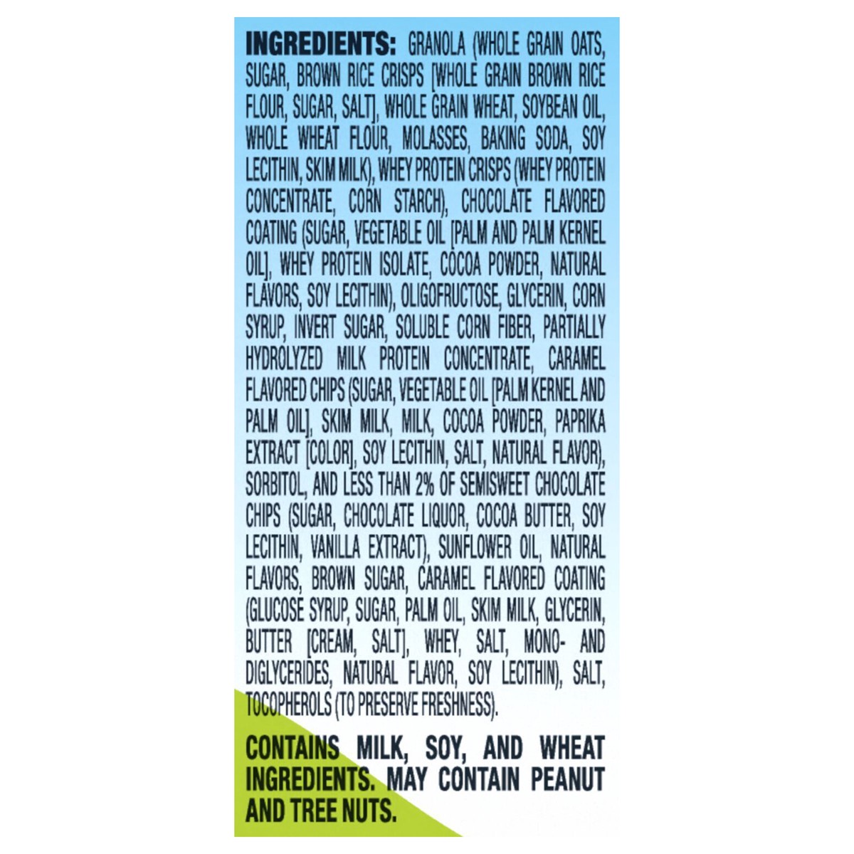 Contains milk, soy, and wheat ingredients. may contain peanut and tree nuts.