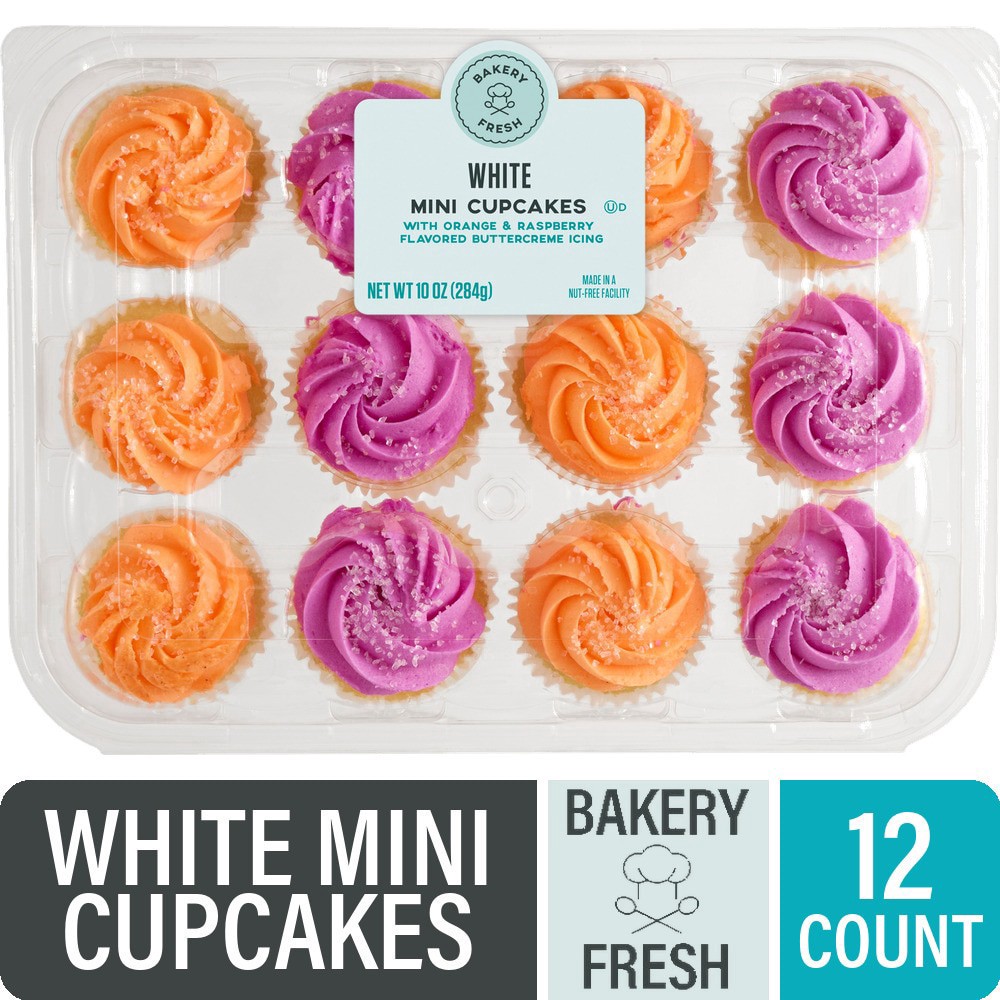 Bakery Fresh Spring White Mini Cupcakes with Orange and Raspberry Flavored Buttercream Icing, 12 ct / 10 oz