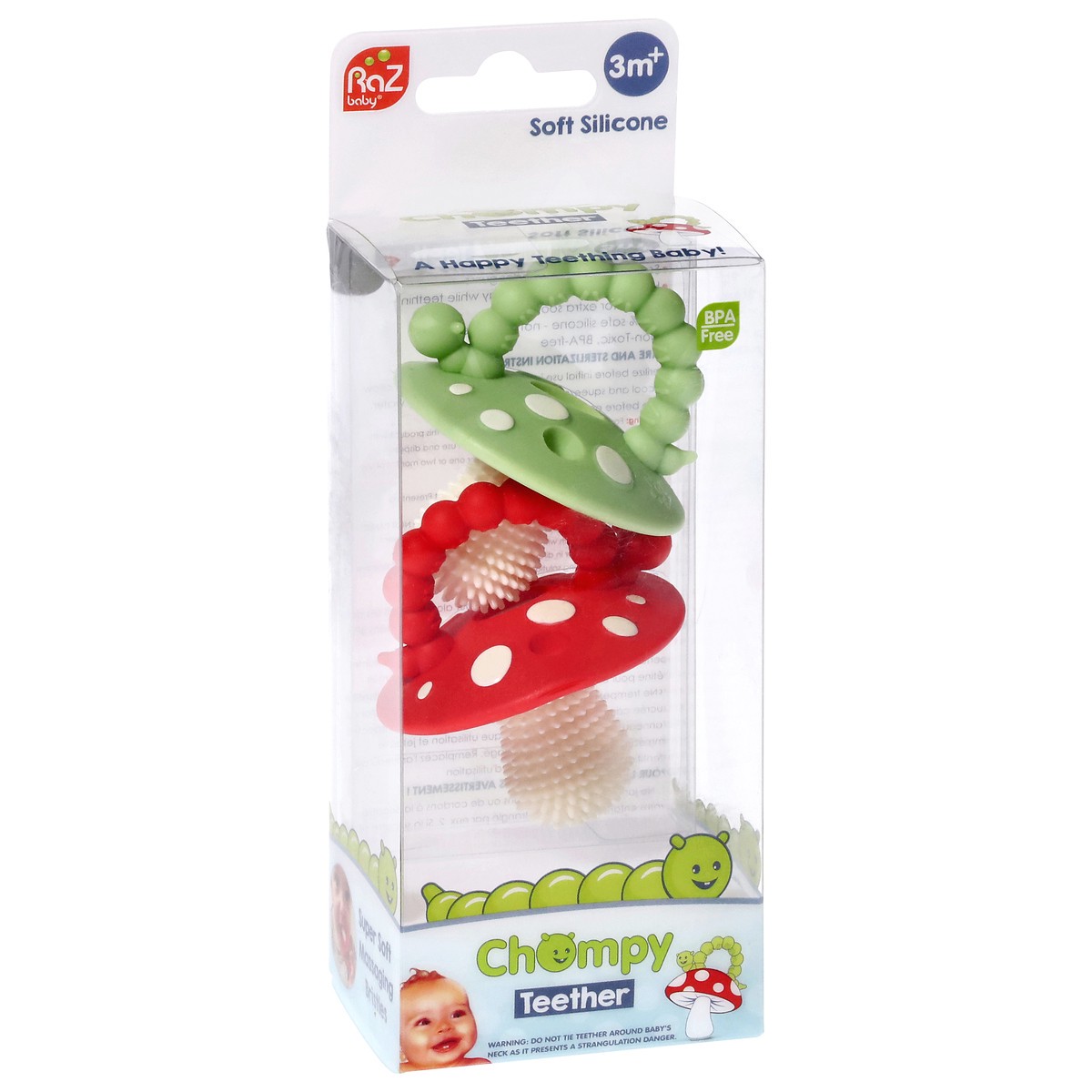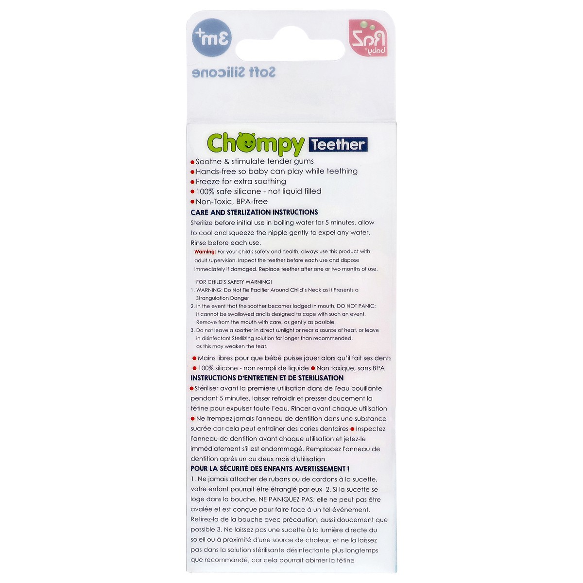 Massaging Bristles: The Chompy teething pacifier is made with 100% soft silicone and textured with patented bristles to soothe sore, swollen gums. It’s great for chewing and can also be frozen for add…