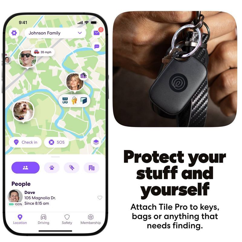 - Tile works seamlessly with Life360 and lets you see all your stuff, people, and pets, all on one map.