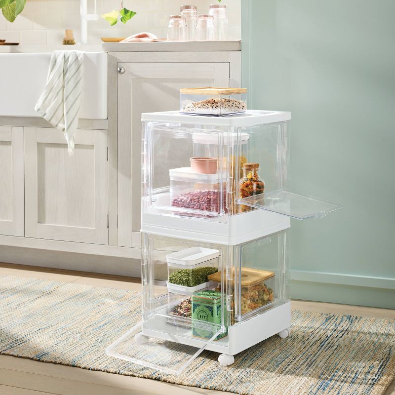 Easily organize your home with this Stackable Collapsible Cube with Doors from Brightroom™. This cube storage box is made from BPA-free material, features transparent doors to see what's inside, and o…