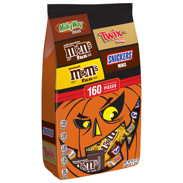 Milky way minis: allergy information: contains milk, egg and soy. may contain peanuts. twix minis: allergy information: contains milk, soy and wheat. may contain peanuts. m&m's fun size milk chocolate candies: allergy information: contains milk and soy. may contain peanuts. snickers minis: allergy information: contains milk, egg and soy. may contain tree nuts. m&m's fun size peanut chocolate candies: allergy information: contains peanuts, milk and soy. may contain tree nuts.