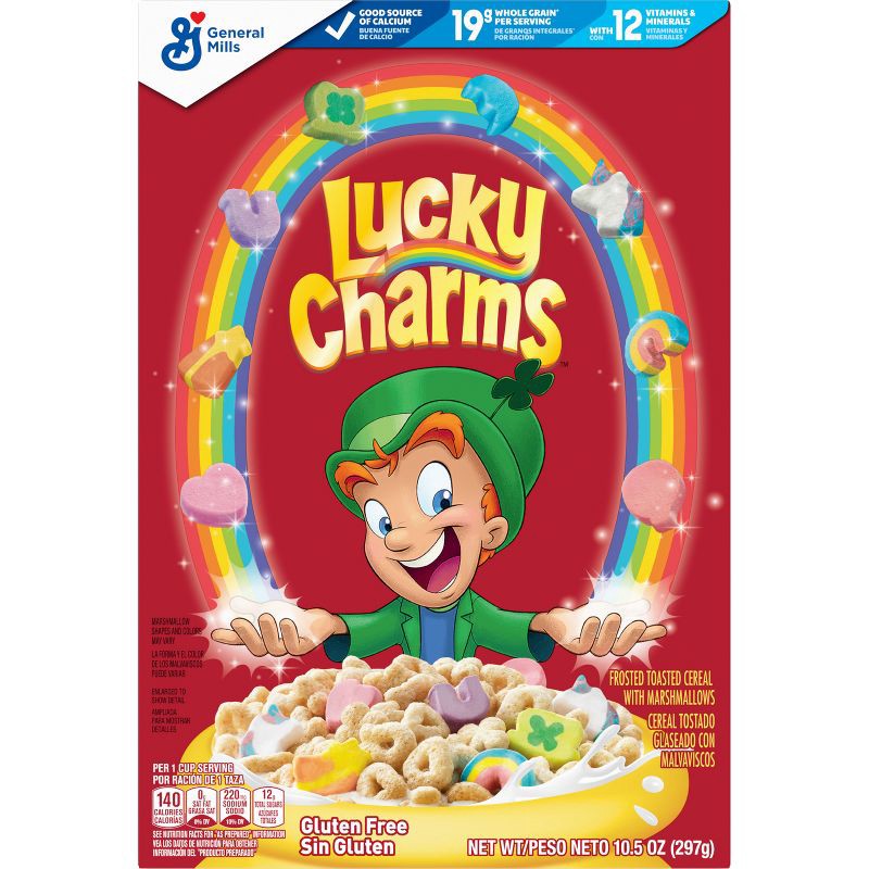 - GLUTEN FREE: A gluten free cereal with 12 vitamins and minerals and a good source of calcium; Enjoy a bowl of Lucky Charms Cereal with milk as a magically delicious start to the day
