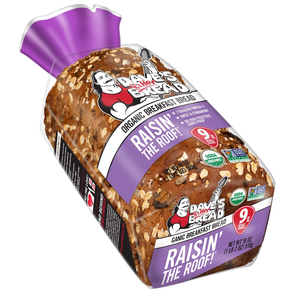 Dave's Killer Bread Raisin' The Roof! bread loaf is the sweet and cinnamony USDA organic breakfast bread raisin' the roof on the basic breakfast experience! Each slice of this Non-GMO Project Verified…