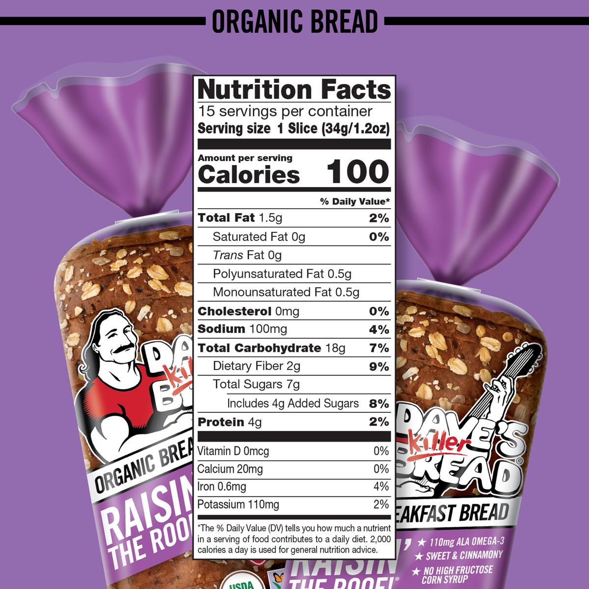 Dave's Killer Bread Raisin' The Roof! bread loaf is the sweet and cinnamony USDA organic breakfast bread raisin' the roof on the basic breakfast experience! Each slice of this Non-GMO Project Verified…