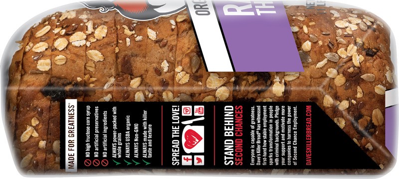 - You'll get an 18 oz. loaf of sliced Dave's Killer Bread Raisin' The Roof! breakfast bread