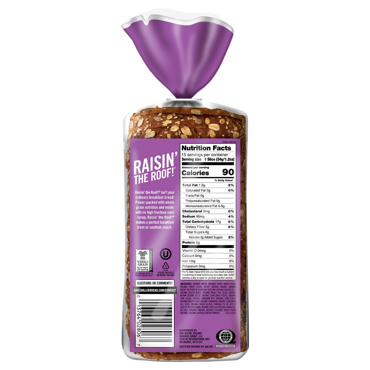 Dave's Killer Bread Raisin' The Roof! bread loaf is the sweet and cinnamony USDA organic breakfast bread raisin' the roof on the basic breakfast experience! Each slice of this Non-GMO Project Verified…