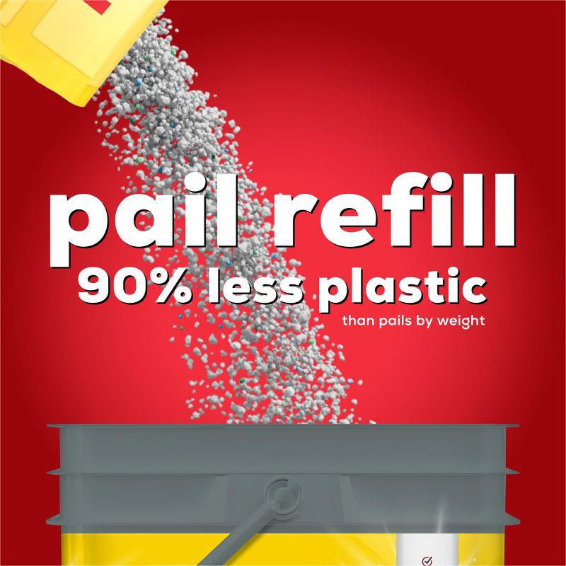 - Same kitty litter clumping formula you are used to buying in the pail, but with 90 percent less plastic than pails by weight