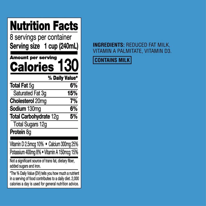 - 1/2gal of grade A 2% reduced fat milk with vitamins A and D along with protein and calcium