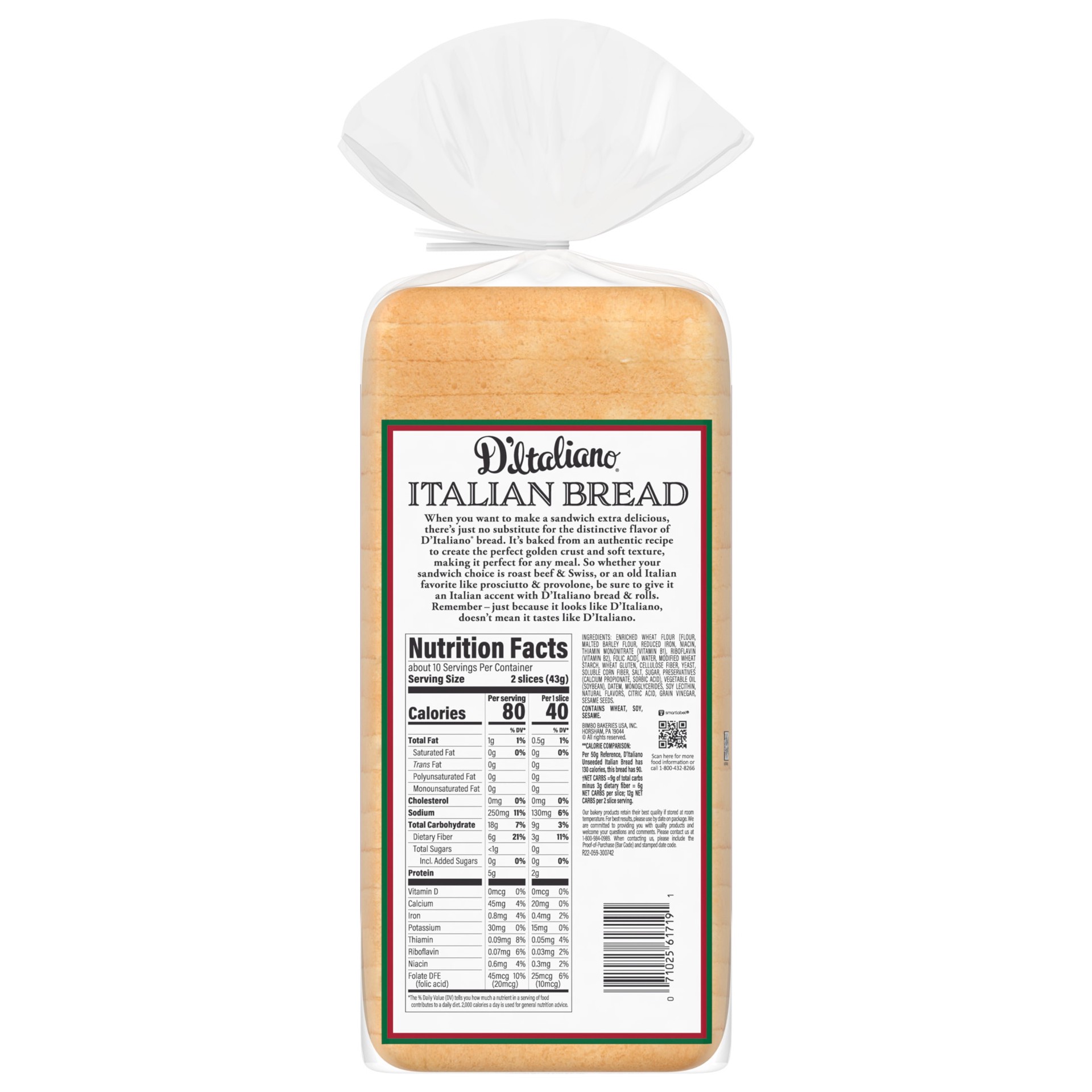 D'italiano Unseeded Italian Bread With Reduced Calories - 16 Oz