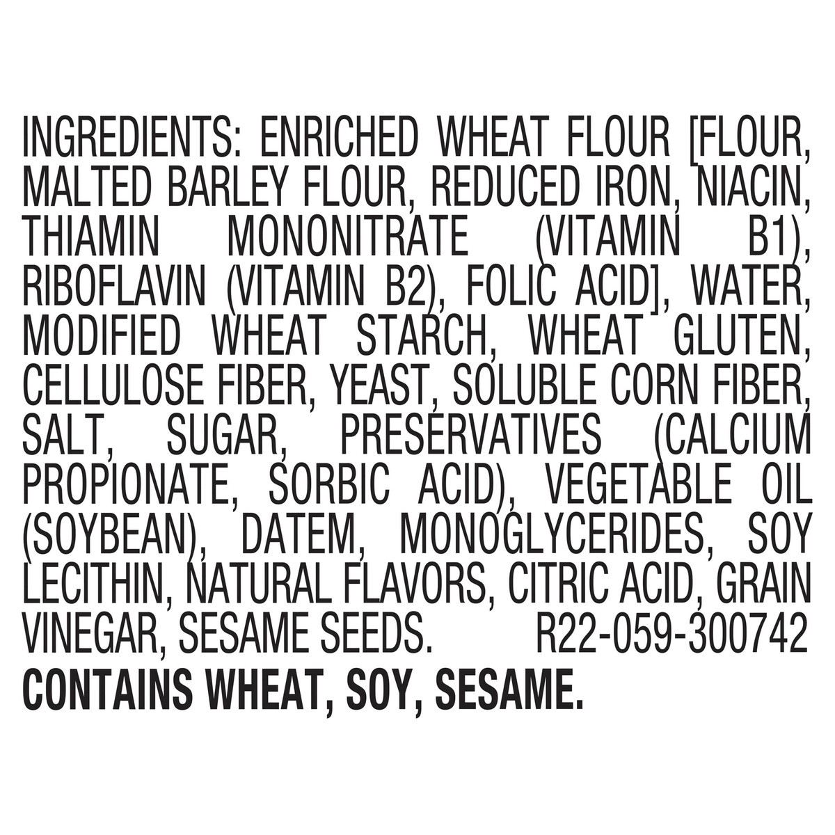 Enriched Wheat Flour [Flour, Malted Barley Flour, Reduced Iron, Niacin, Thiamin Mononitrate (Vitamin B1), Riboflavin (Vitamin B2), Folic Acid], Water, Modified Wheat Starch, Wheat Gluten, Cellulose Fi…