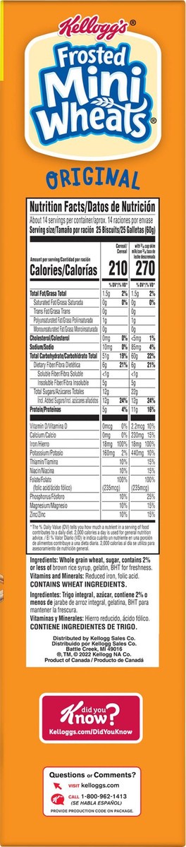 Greet the day with Kellogg's Frosted Mini-Wheats Original cereal, a wholesome, low-fat breakfast cereal that's built for big days. These bite-sized biscuits pack a hearty crunch with crispy layers of …