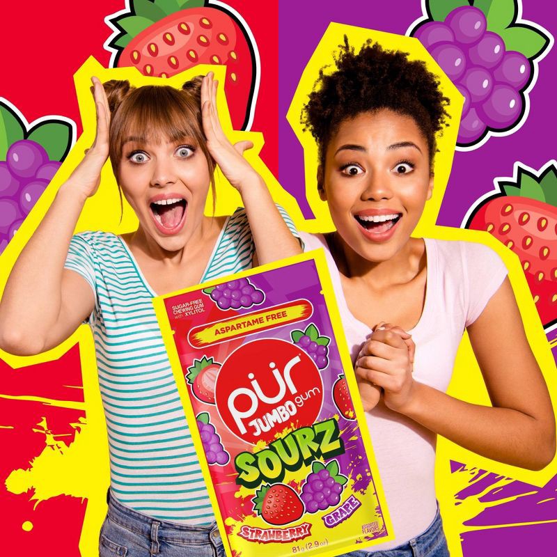 PUR Jumbo Gum Sourz Strawberry & Grape Flavor - 2.92oz