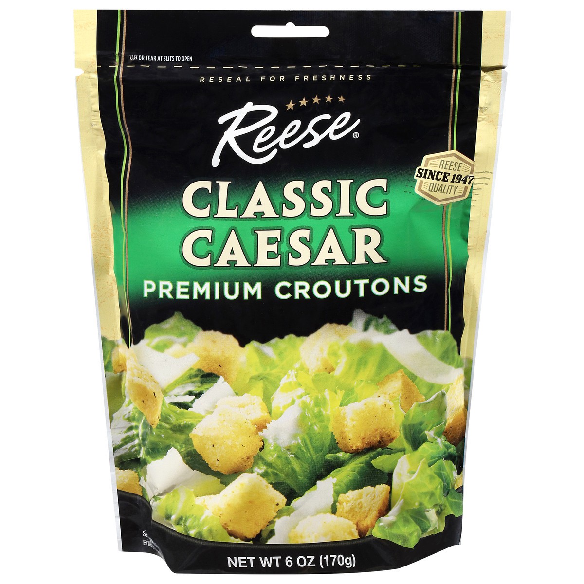 Reseal for freshness. Reese quality since 1947. Croutons have become a standard in salad bowls all over America. But not all croutons are the same. Reese croutons are made from specially formulated do…