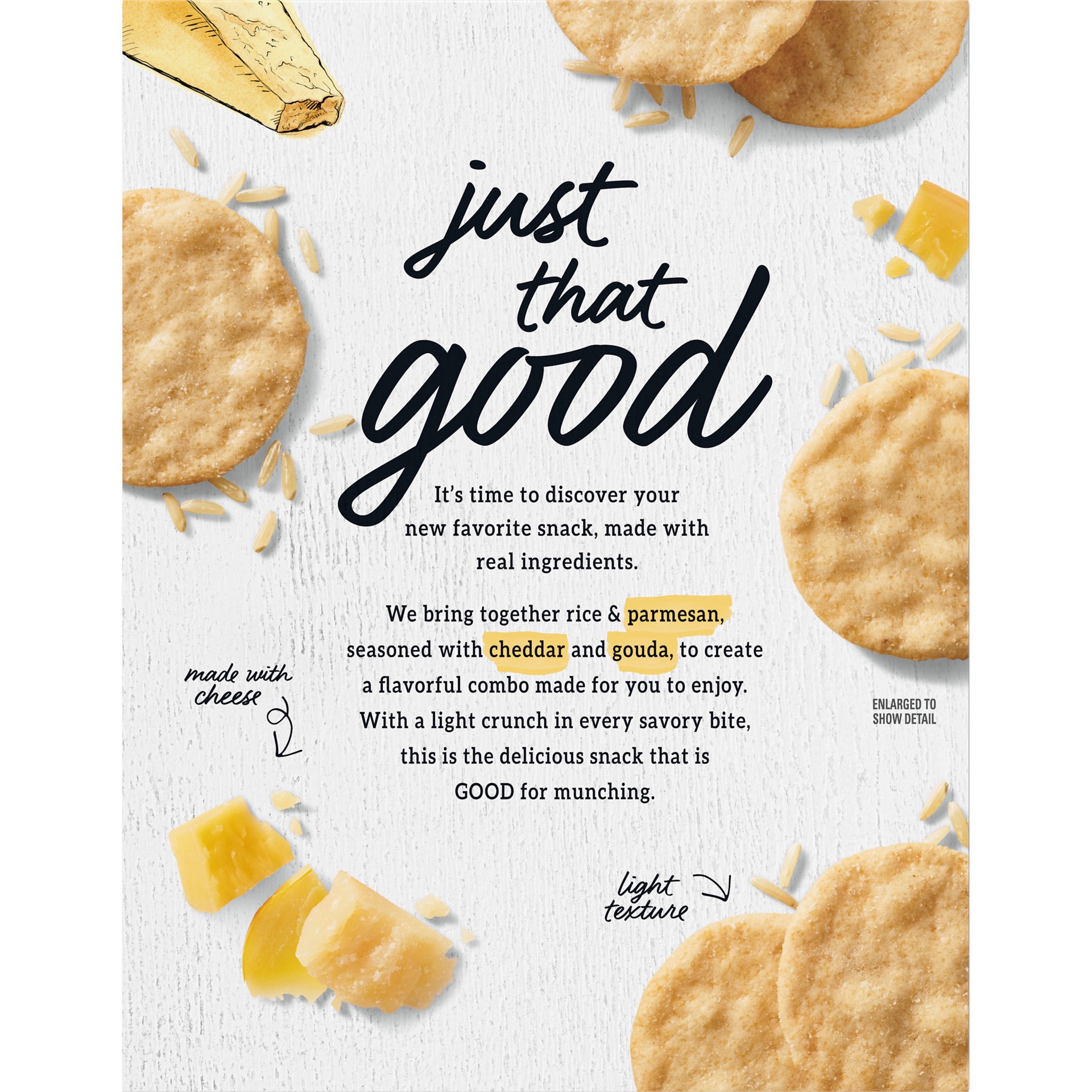 Enjoy a wholesome snack anytime, anywhere with GOOD THINS Three Cheese Rice & Cheese Snacks Gluten Free Crackers. Crafted with rice and cheese, these snack crackers are made with delicious goodness ba…