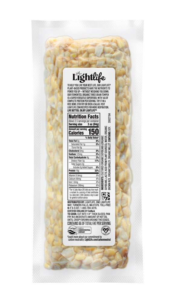 Equally delicious and nutritious, Lightlife Three Grain Organic Tempeh is a perfect foundation for healthy vegan and vegetarian dishes. This plant-based vegan protein is made with a blend of brown ric…