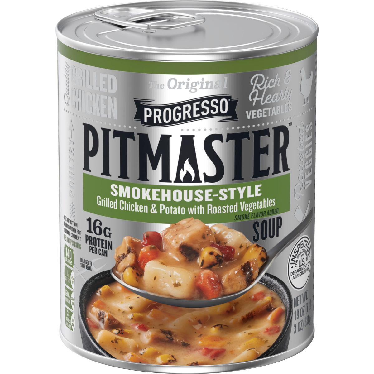 Indulge in the hearty, savory taste of Progresso Pitmaster Smokehouse-Style Grilled Chicken & Potato with Roasted Vegetables Soup. Each delicious and decadent spoonful of this gluten-free soup include…