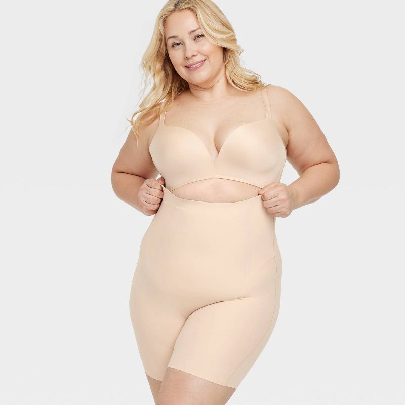 Women's Firm Sculpting High-Waist Shorts - Auden™ Soft Beige XXL: Nylon Spandex Blend, Pull-On, Elastic Leg Openings, Opaque Knit