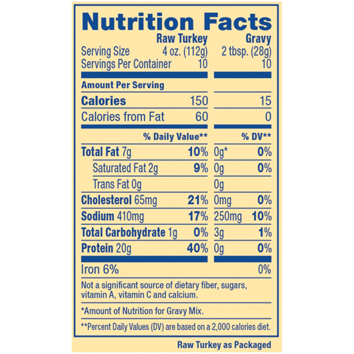 Contains Up to 20% of a Solution of Water, Contains 2% or Less of Salt, Dextrose, Natural Flavor, Modified Food Starch, Sodium Phosphate for Tenderness and Juiciness. Gravy Packet Ingredients: Water, …