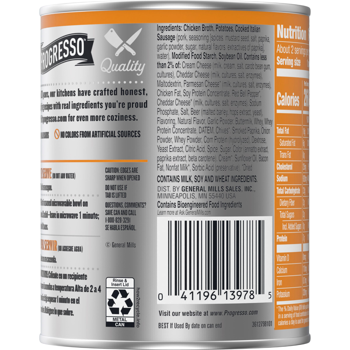 Progresso Pitmaster Sausage and Beer Cheese with Potatoes Canned Soup - 18 oz