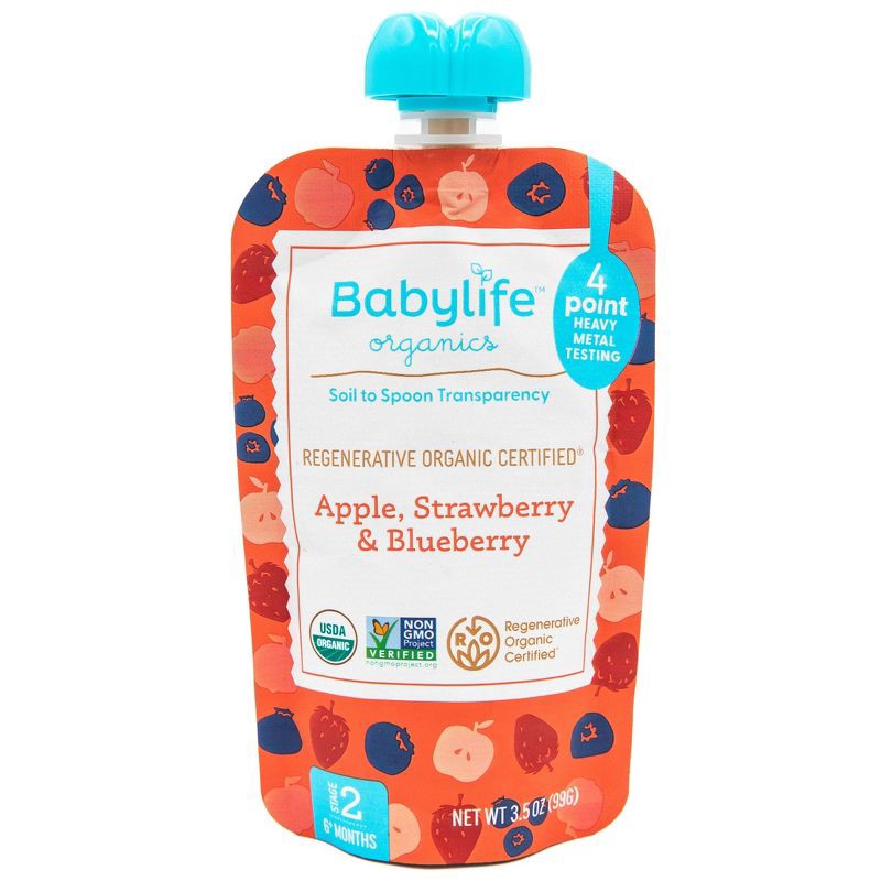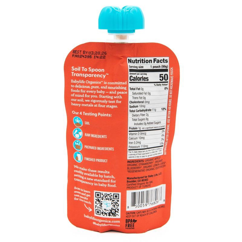 Babylife Organics Apple Strawberry and Blueberry Baby Food Pouch - 3.5oz: Age 10 Months+, 2nd Stage, Pureed, Ready to Eat