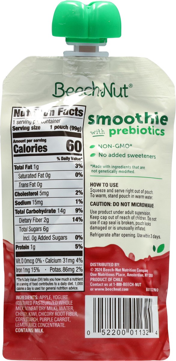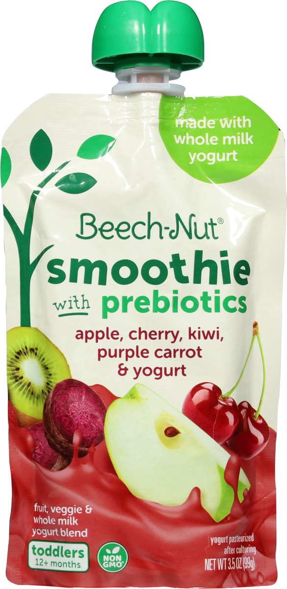Beech-Nut Smoothie Prebiotics Stage 4 Apple Cherry Puprle Carrot & Yogurt Toddler Food Pouch - 3.5 Oz